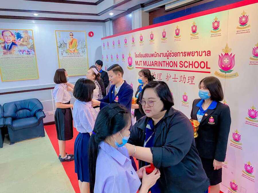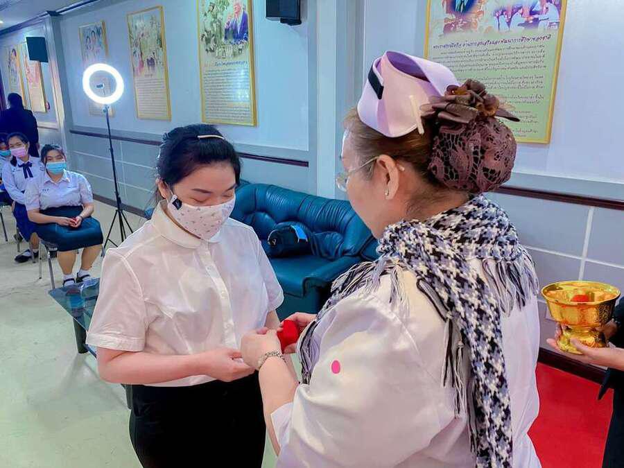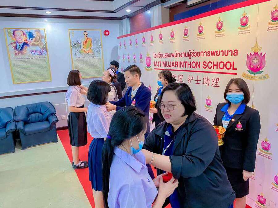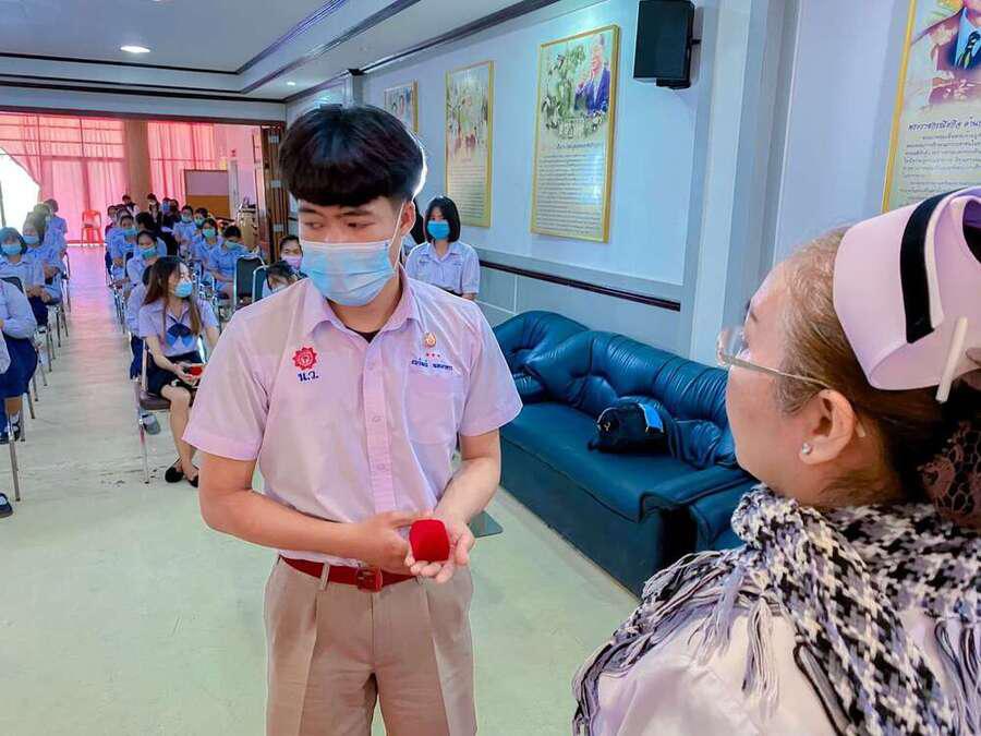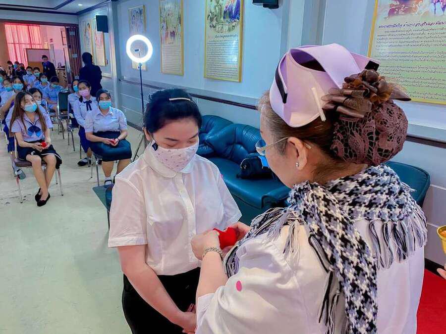 พิธีมอบเข็มสถาบัน มจธ.นักศึกษารุ่น1/64 ปีการศึกษา2564 เพื่อเป็นเครื่องหมายการเข้าสู่วิชาชีพผู้ช่วยการพยาบาล เมื่อวันที่ 19 ธันวาคม 2563 ณ ศูนย์การเรียนรู้ปรัชญาเศรษฐกิจพอเพียงตามแนวพระราชดำริ ศูนย์สาธิตและส่งเสริมงานศิลปาชีพ ภาคตะวันออกเฉียงเหนือ S:0