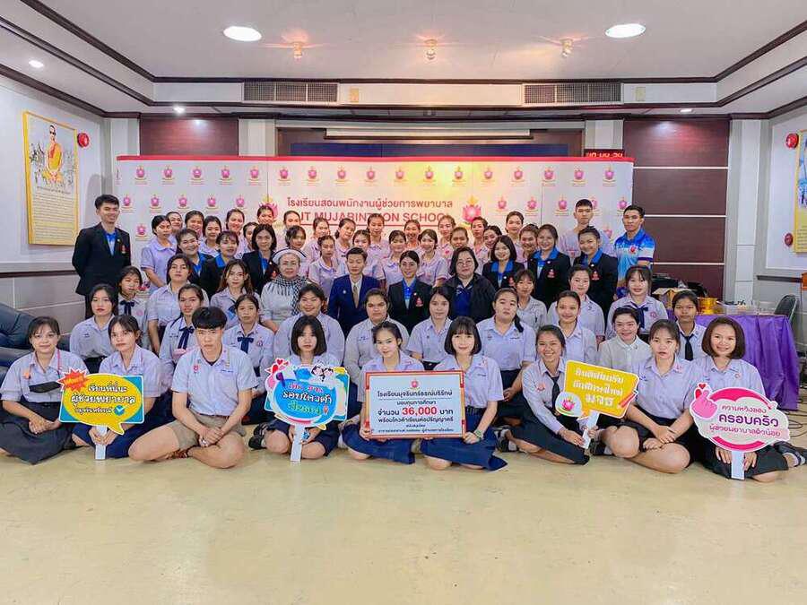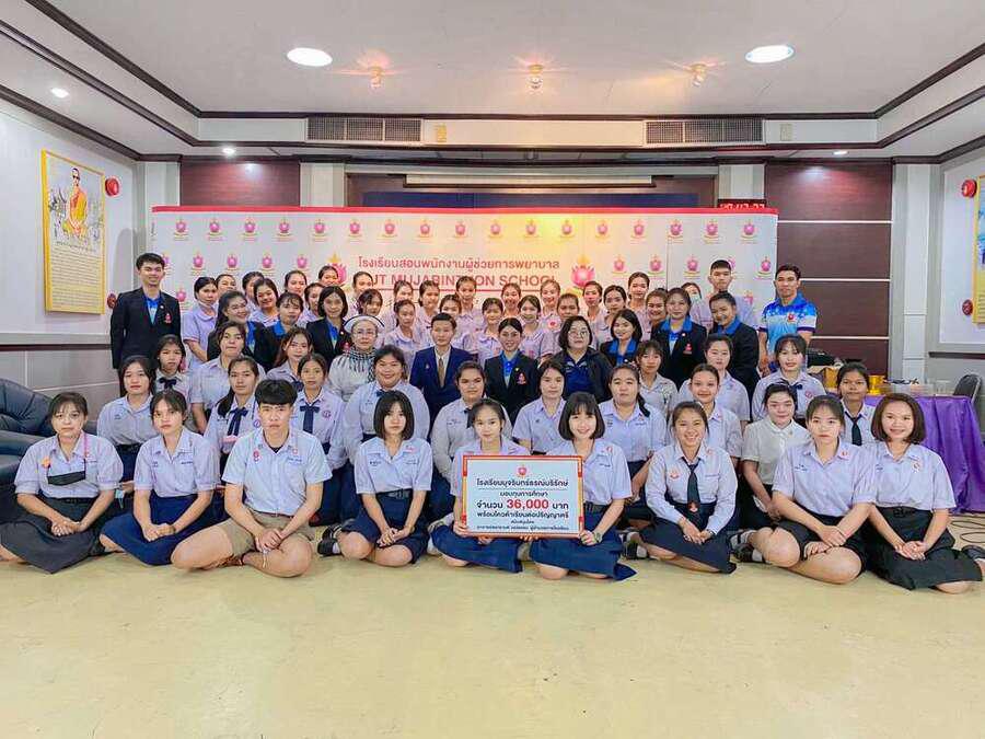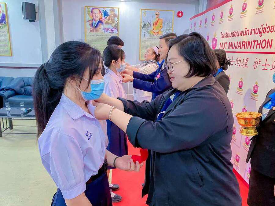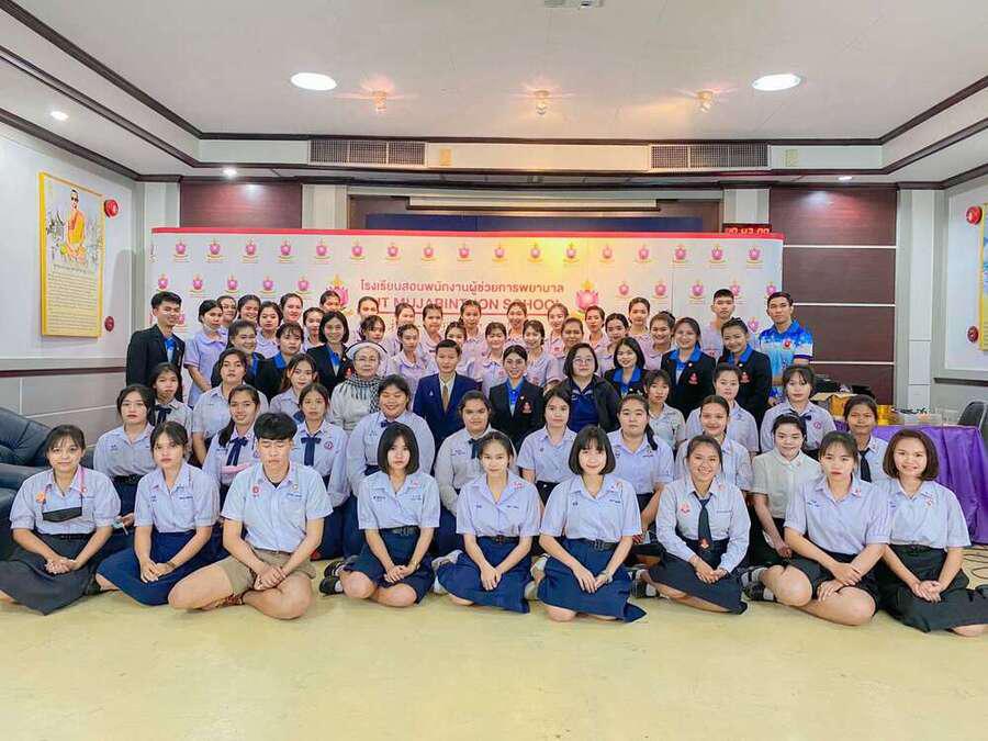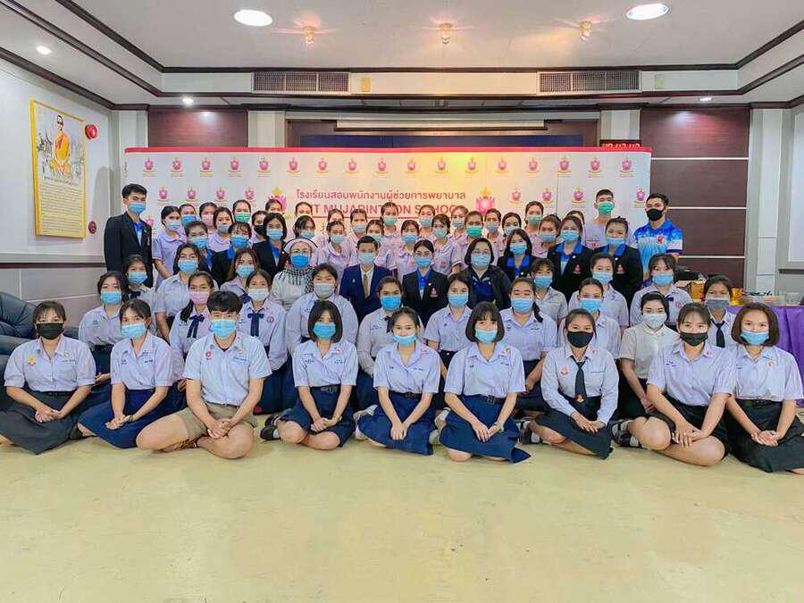 พิธีมอบเข็มสถาบัน มจธ.นักศึกษารุ่น1/64 ปีการศึกษา2564 เพื่อเป็นเครื่องหมายการเข้าสู่วิชาชีพผู้ช่วยการพยาบาล เมื่อวันที่ 19 ธันวาคม 2563 ณ ศูนย์การเรียนรู้ปรัชญาเศรษฐกิจพอเพียงตามแนวพระราชดำริ ศูนย์สาธิตและส่งเสริมงานศิลปาชีพ ภาคตะวันออกเฉียงเหนือ S:0