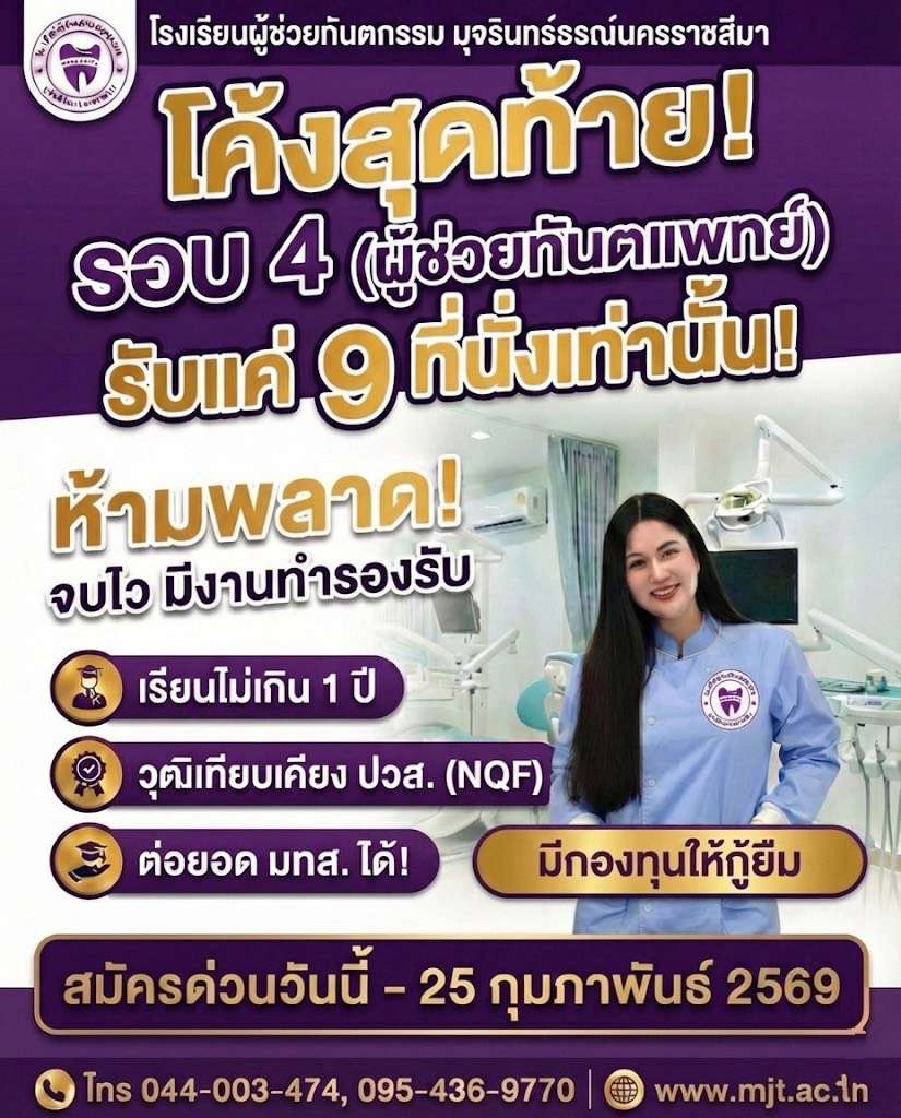 เปิดรับสมัคร นักเรียน/นักศึกษา มาเป็นผู้ช่วยหมอฟัน (สมัครเรียนพร้อมจองบรรจุงาน)